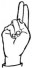 На ћирилици написано ЕМА РЕСКОВИЋ састоји се из 11 слова [?]. Исписано ћириличном једноручном азбуком за глувонеме: